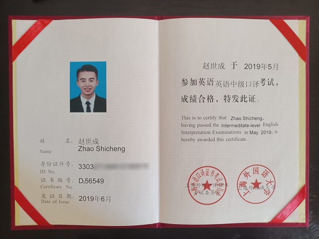Registered as Professional Voice Over Artist in Chinese Approved by MOE China. Majored in Voice Over (Chinese Language) Graduated. Registered as Professional Translator/Interpreter Approved by MOE Shanghai, China.